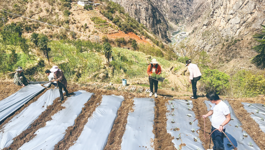 毛菇廠村位于雅礱江環(huán)繞錦屏山的大急彎上,全村平均海拔1900米,地處高山峽谷地帶,過去一直有村民將自家種植的玉米、白菜及各種蔬菜自行銷往縣城,但這種銷售方式相對傳統(tǒng),零星分散。如何在產能較低的傳統(tǒng)農業(yè)中找到“特色細分領域”集中發(fā)力?2023年,煙袋鎮(zhèn)黨委等進行多方調研后,決定依托該村土壤資源優(yōu)勢,加速土地流轉,“匯小田變大田”。