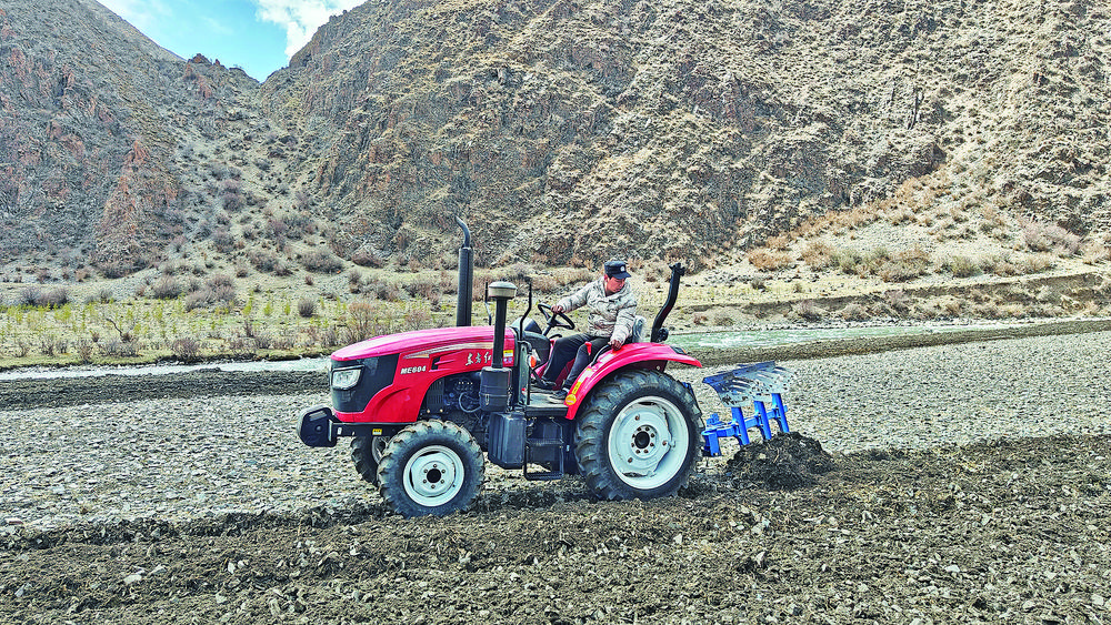 進村時還在飄雪的結(jié)拉村,下午放晴了。跟隨駐村工作隊的腳步,我們來到結(jié)拉村的春耕現(xiàn)場,三輛拖拉機正在有序犁地,已經(jīng)犁過的地里,大家在有序地撒種。“群里說今天開始春耕了,我正好有時間就過來了,我們?nèi)膫€人輪流開,今天得犁30多畝地?!闭f著話,鬧布達杰的同伴接過了他的車繼續(xù)作業(yè)?!按遄永锏那鄩涯昊径紩_,誰有時間誰就過來。種地時,大家都不會偷懶,四五天時間,村子里的1500多畝地也就種完了?!濒[布達杰說。