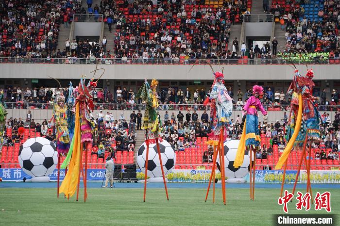 5月18日,“大美青海·高原足球”超級(jí)聯(lián)賽在位于西寧市的青海體育中心開幕。聯(lián)賽設(shè)西寧市、海東市、海南州、海北州、海西州、黃南州、果洛州(異地主場)、玉樹州8個(gè)賽區(qū),來自青海省各市州的8支參賽隊(duì)將進(jìn)行14輪56場比賽。開幕式現(xiàn)場,舞龍舞獅、社火高蹺等齊上陣,為比賽增色添彩。