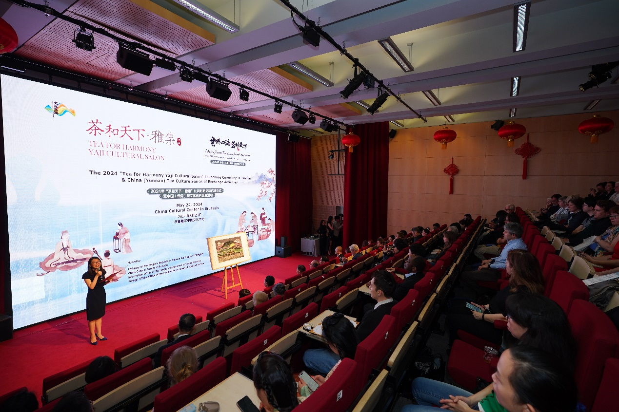 這幅作品由中國(guó)著名藝術(shù)家賀昆創(chuàng)作,通過(guò)木板套刻和層層渲染,鐫刻了全球首個(gè)茶主題世界文化遺產(chǎn)“普洱景邁山古茶林文化景觀”人、茶、林共生的美好畫面。當(dāng)?shù)貢r(shí)間5月24日,在布魯塞爾中國(guó)文化中心舉辦的“茶和天下·雅集”比利時(shí)站活動(dòng)啟動(dòng)儀式暨中國(guó)(云南)茶文化系列交流活動(dòng)上,現(xiàn)場(chǎng)揭幕了這幅來(lái)自云南的作品。