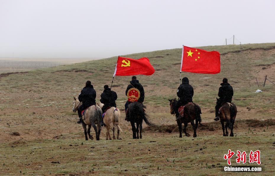 6月3日,在青海省果洛藏族自治州瑪多縣花石峽鎮(zhèn),瑪多縣人民法院“馬背法庭”的法官頂風前往牧民家中進行訴前調解。薛蒂 攝