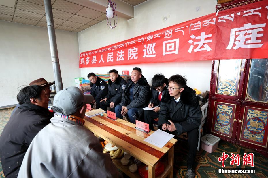 瑪多縣地處黃河源頭,是黃河發(fā)源后流經的第一個縣城?,敹嗥骄0纬?500米,是青海省海拔最高的縣,也是人類生存環(huán)境最惡劣的地區(qū)之一,加上地廣人稀,交通不便,法官調查取證難、送達難,農牧民參與訴訟難。1957年,瑪多縣人民法院成立之初就成立了“馬背法庭”。巡回法庭的的法官經常帶著干糧,騎著馬找到當事人,就地審理案件。