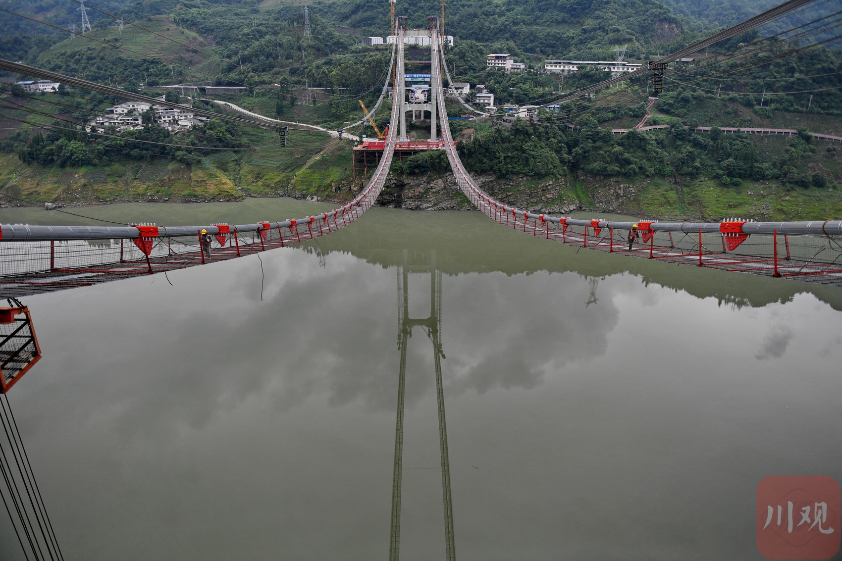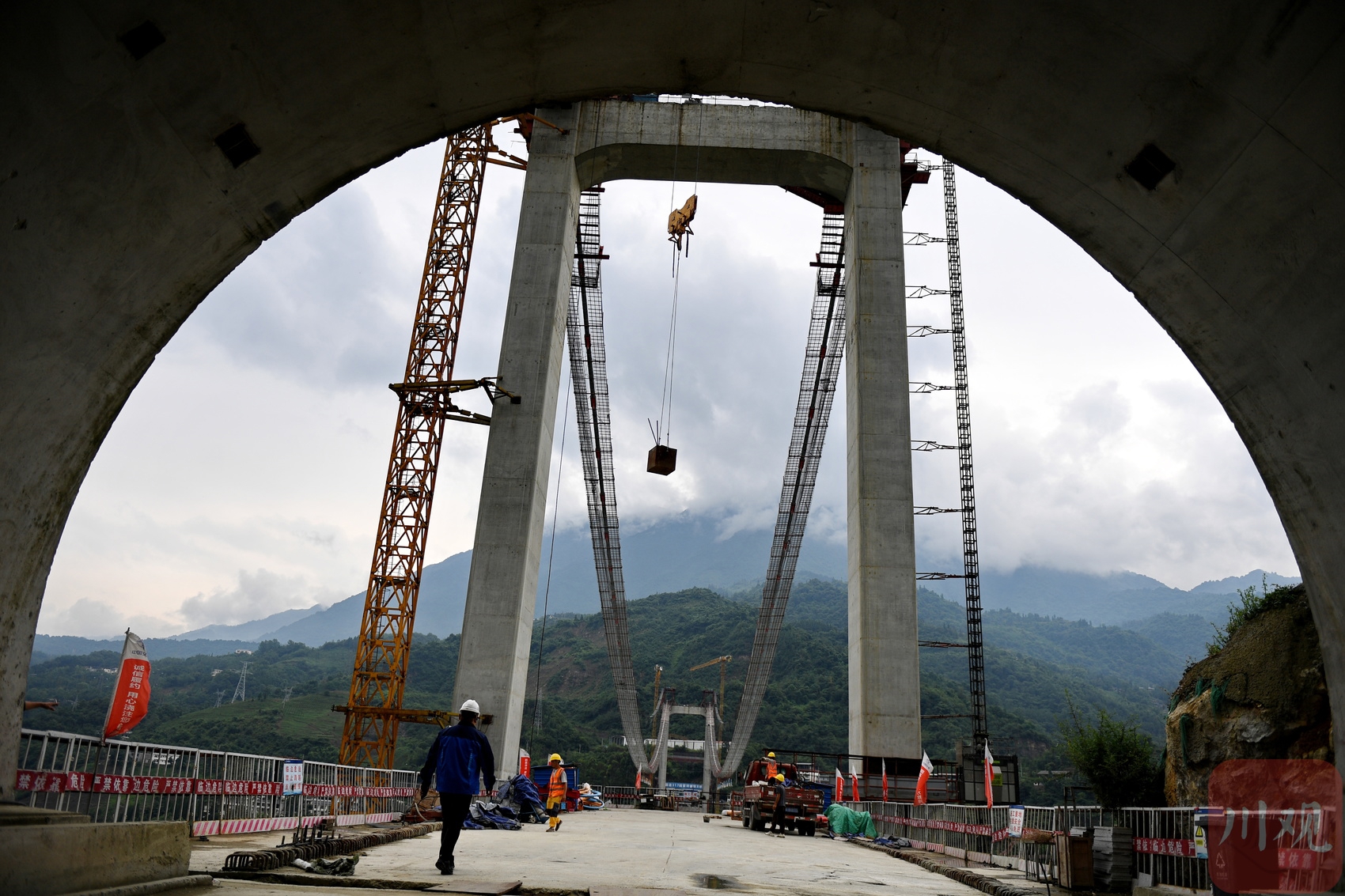 由中交路橋建設(shè)有限公司承建的國(guó)道317線友誼隧道至映秀段改建工程項(xiàng)目路線全長(zhǎng)12.77公里,都江堰市境內(nèi)約0.92公里,汶川縣境內(nèi)約11.85公里。其控制性工程紫坪鋪特大橋是主跨485米橫跨岷江紫坪鋪水庫(kù)的懸索橋,為“反括弧”空間線型主纜懸索橋,是阿壩州第一座懸索橋,也是全國(guó)最大跨徑“反括弧”空間線型主纜懸索橋。其主纜上下游各設(shè)48根通長(zhǎng)索股,單根索股長(zhǎng)802米,每根索股由127根直徑為5.3毫米的高強(qiáng)鍍鋅鋼絲組成,目前已完成整個(gè)工程量的70%,預(yù)計(jì)今年主體工程完工。