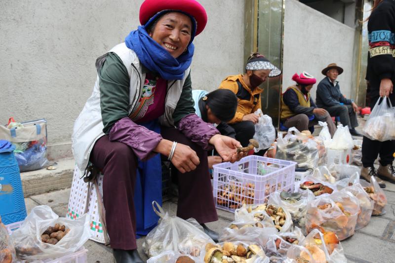 眼下正是野生菌上市時節(jié),記者在香格里拉市城區(qū)各大菜市場看到,銅綠菌、一窩菌、雞油菌、老人頭等野生菌均已上市,種類繁多、價格公道,深受消費者喜愛。