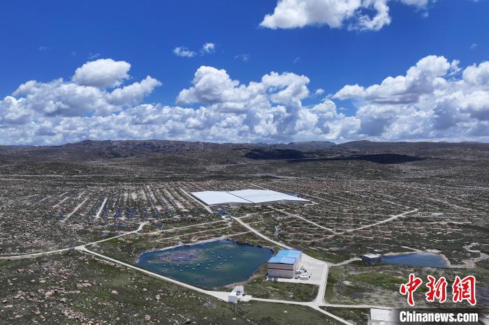 圖為“拉索”一角有序排列的探測器。(無人機照片)中新社記者 劉忠俊 攝