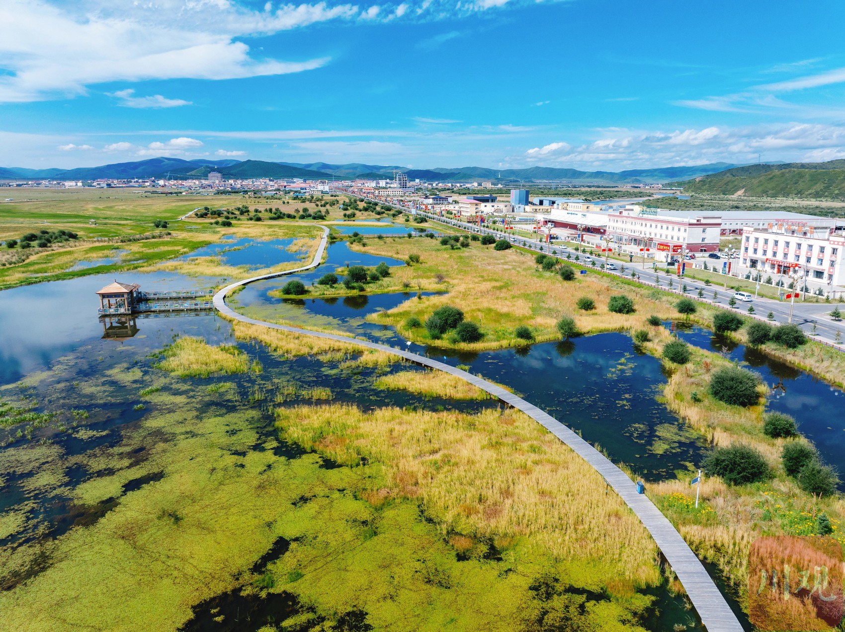 8月18日,天空高遠(yuǎn),風(fēng)光旖旎,國道旁的四川省阿壩藏族羌族自治州紅原縣邛溪鎮(zhèn)熱坤村的邛溪濕地公園已成為眾多游客的熱門打卡點(diǎn)。