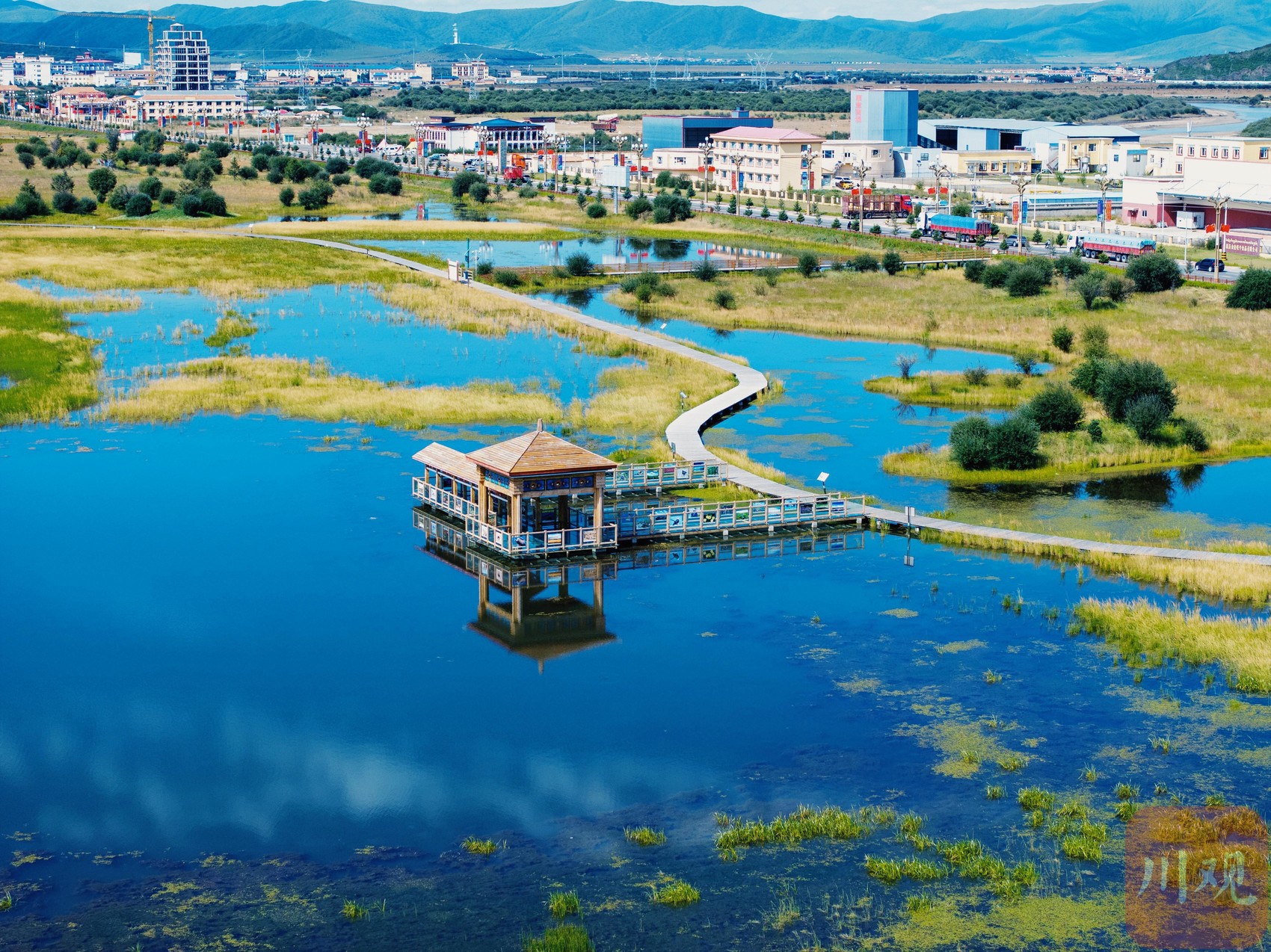 這里原本是一處污水坑。幾年前,紅原縣結(jié)合川西高原生態(tài)脆弱區(qū)綜合治理項(xiàng)目、濕地保護(hù)恢復(fù)提升改造項(xiàng)目等重點(diǎn)生態(tài)建設(shè)項(xiàng)目,通過新建擋沙壩、溢流壩、副壩等措施來強(qiáng)化蓄水保濕效果,使得大片濕地植被和生態(tài)系統(tǒng)得到了有效修復(fù),成為了國道旁的新晉打卡景點(diǎn)。