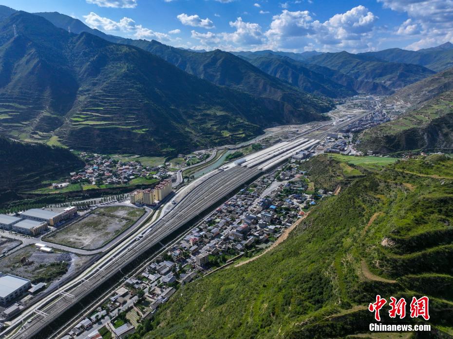 圖為川青鐵路鎮(zhèn)江關(guān)站全景。(無人機(jī)照片)中新社記者 劉忠俊 攝