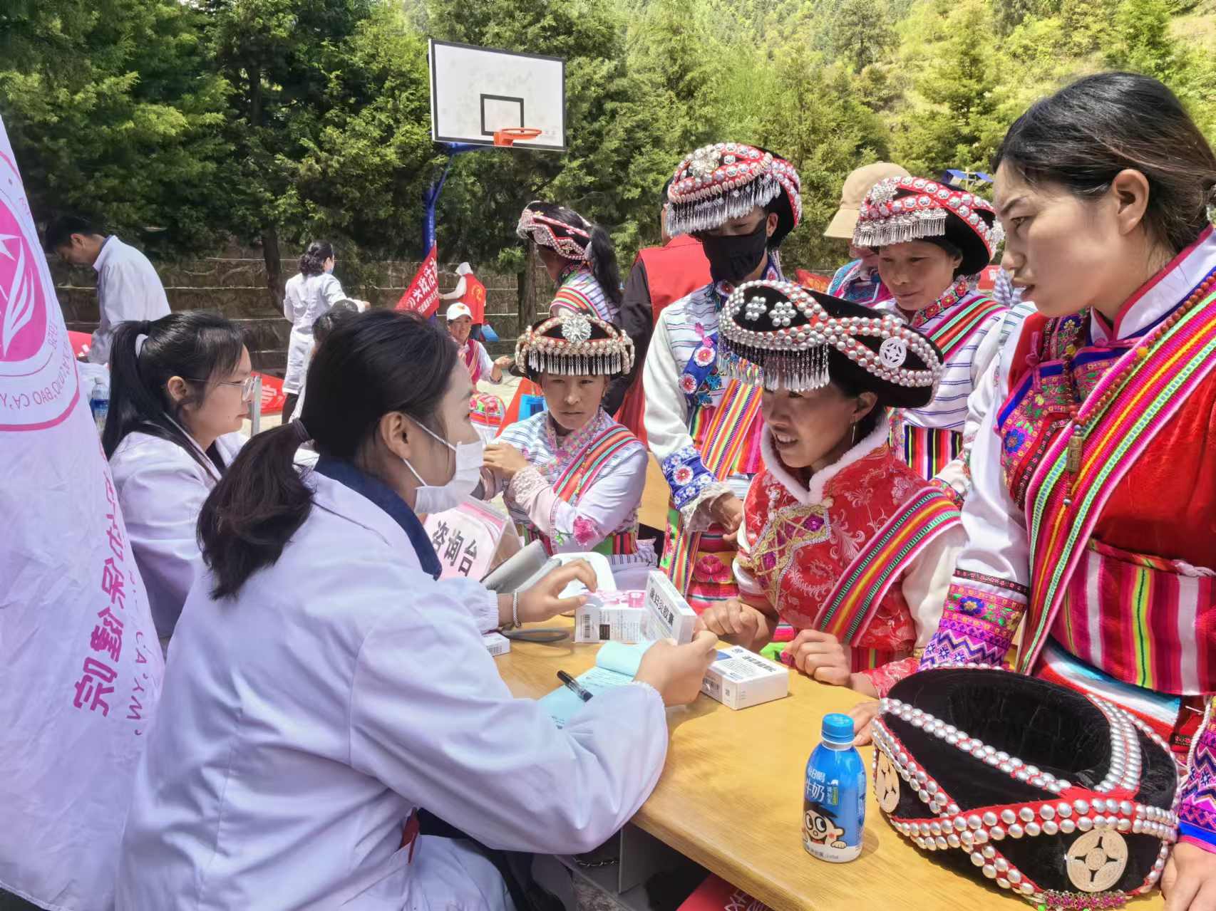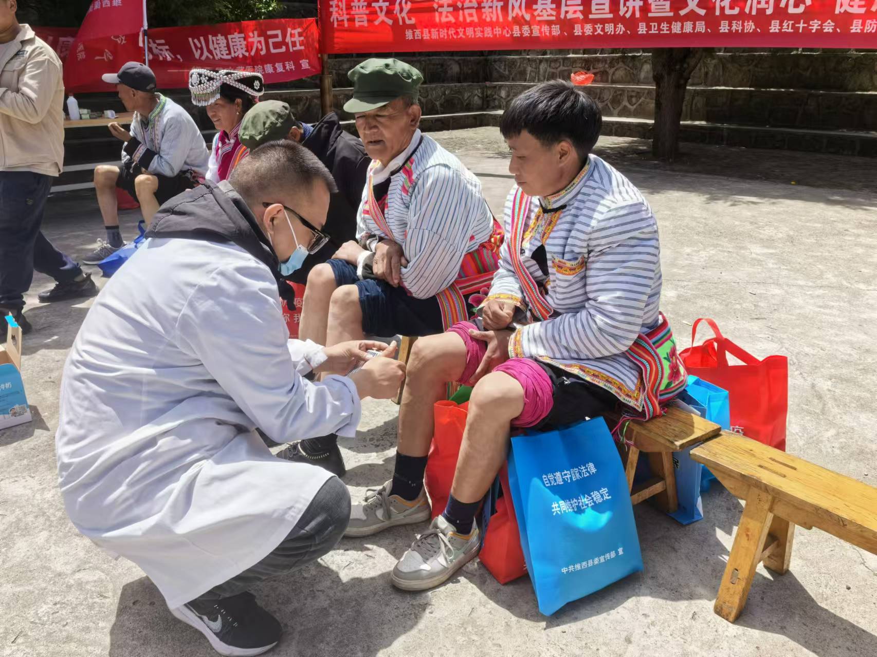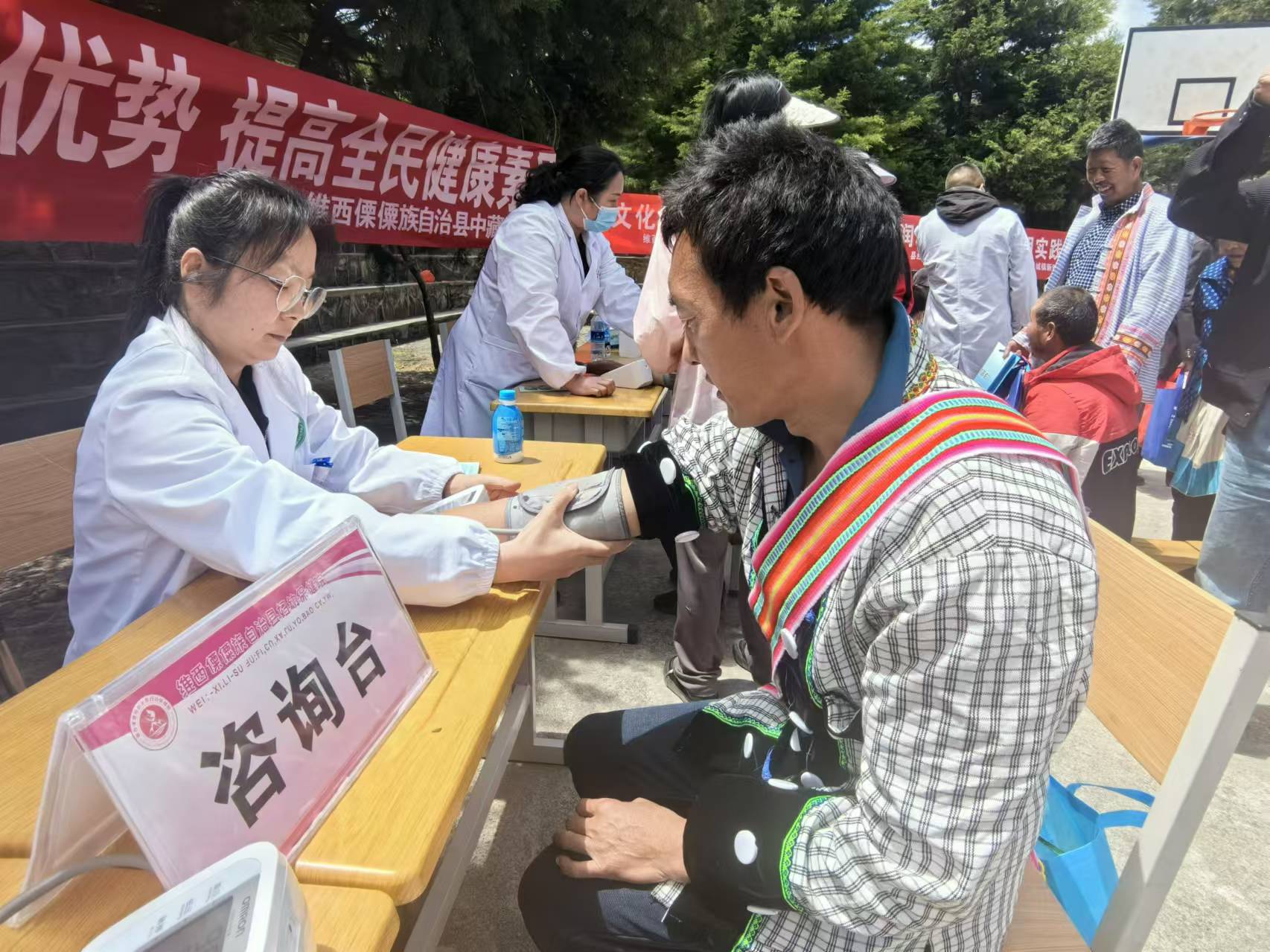 今年以來,由上海幫扶專家、縣人民醫(yī)院醫(yī)師組成的維西縣新時代文明實踐中心先鋒醫(yī)療隊多次深入村組開展巡回醫(yī)療志愿服務活動,為群眾提供心電圖等常規(guī)體檢以及多發(fā)病、慢性病等病癥現場診療和咨詢服務,還免費向群眾發(fā)放藥品,切實解決了農村群眾看病就醫(yī)難題。圖為上海專家志愿者向傈僳族群眾免費發(fā)放藥品。