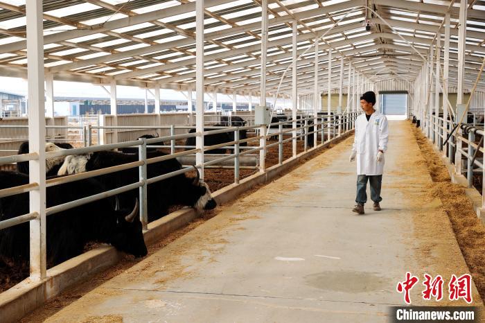 圖為海東市互助縣海盛生態(tài)牧場(chǎng)飼養(yǎng)的牦牛。薛蒂 攝