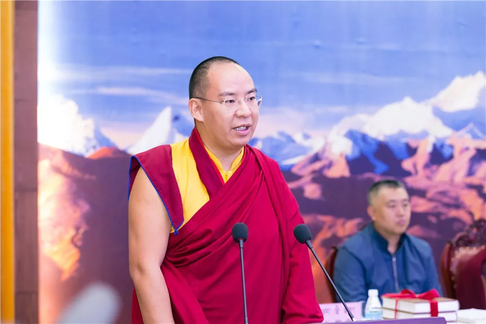 十一世班禪在致辭中指出,歷世班禪是藏傳佛教愛(ài)國(guó)愛(ài)教的一面旗幟。傳承和弘揚(yáng)歷世班禪大師愛(ài)國(guó)愛(ài)教思想,對(duì)于推動(dòng)藏傳佛教再弘期更好地與中國(guó)特色社會(huì)主義相適應(yīng),推動(dòng)藏傳佛教更好地為維護(hù)國(guó)家統(tǒng)一,促進(jìn)中華民族團(tuán)結(jié),維護(hù)社會(huì)和諧穩(wěn)定服務(wù),具有非常重要的作用。《歷世班禪文集》歷史意義深遠(yuǎn)。以書(shū)刊為媒介符合時(shí)代潮流,能夠讓廣大的信教群眾,宗教界專(zhuān)家學(xué)者,特別是年輕一代更便捷,更系統(tǒng)學(xué)習(xí)歷世班禪愛(ài)國(guó)愛(ài)教思想的精髓。他希望藏傳佛教界人士,要以藏傳佛教歷代愛(ài)國(guó)愛(ài)教先賢大德為榜樣,感恩黨,感恩祖國(guó),努力聞思顯密精要,為眾生帶來(lái)利樂(lè)。