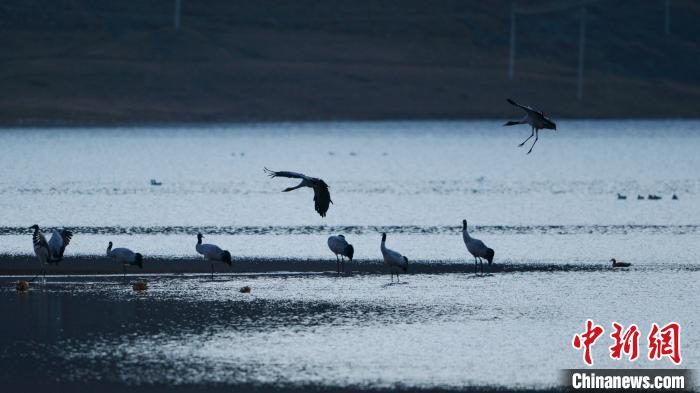 記者本月15日至16日從西藏拉薩市林周縣澎波河流域觀察了解到,中國國家一級保護動物黑頸鶴已大量遷徙至該區(qū)域越冬。