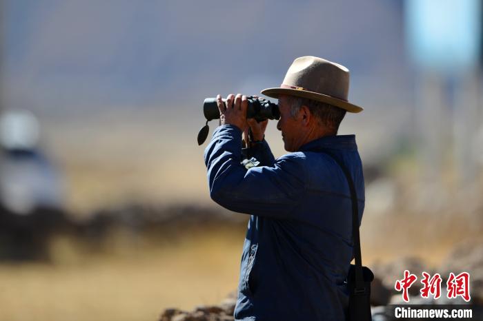 圖為西藏林周縣黑頸鶴巡護員旦增,每年入冬后他要負責轄區(qū)黑頸鶴安全過冬?!〗w波 攝