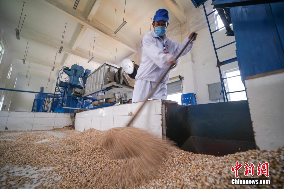 圖為7月28日,洛隆洛宗特色產(chǎn)品開發(fā)公司工人炒青稞。中新社記者 何蓬磊 攝