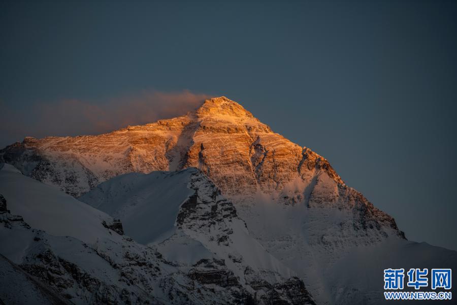 落日余暉灑在珠峰峰頂(2020年5月4日攝)。新華社記者 孫非 攝