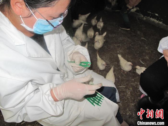 圖為西藏自治區(qū)農(nóng)科院畜牧獸醫(yī)研究所工作人員準(zhǔn)備為種雞標(biāo)號。西藏自治區(qū)農(nóng)科院畜牧獸醫(yī)研究所供圖