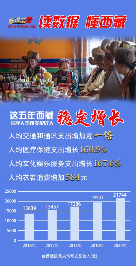 “十三五”期間,在中央和地方一系列政策措施的推動下,西藏居民收入持續(xù)攀升。西藏自治區(qū)政府統(tǒng)計數(shù)據(jù)顯示,2020年西藏居民人均可支配收入達21744元,較2015年增長77.4%。