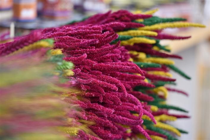 “羅薩梅朵一把5元,都是自家制作的?!?6日,記者在拉薩市八廓商城看到,一處攤位上整齊地?cái)[放著羅薩梅朵,不時(shí)有顧客前來詢價(jià)挑選。