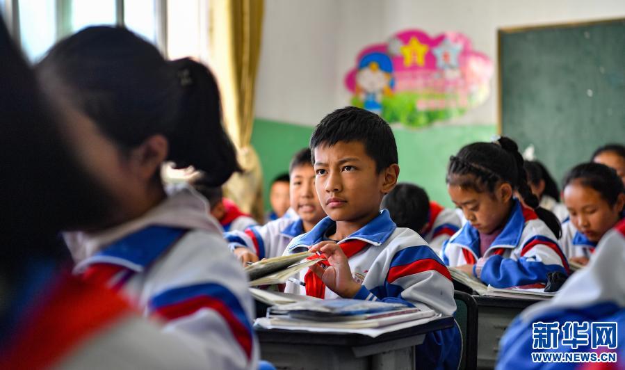 西藏昌都市實(shí)驗(yàn)小學(xué)六年級(jí)四班的學(xué)生在上藏語(yǔ)課(2020年10月5日攝)。新華社記者 晉美多吉 攝