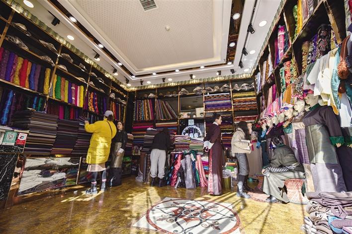 如果想要定制一款藏裝,相信很多人必定會(huì)去位于北京東路的措美林一帶逛逛。從措美林直至神力時(shí)代廣場(chǎng)附近的街道兩旁各類大小規(guī)模不一的藏裝店,無(wú)論男女老少,都可以在此買到自己想要的款式。