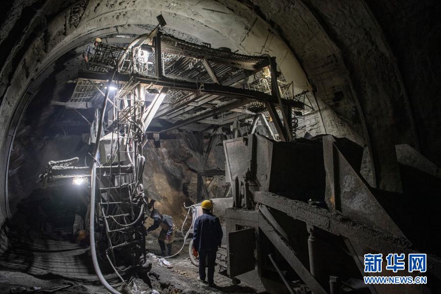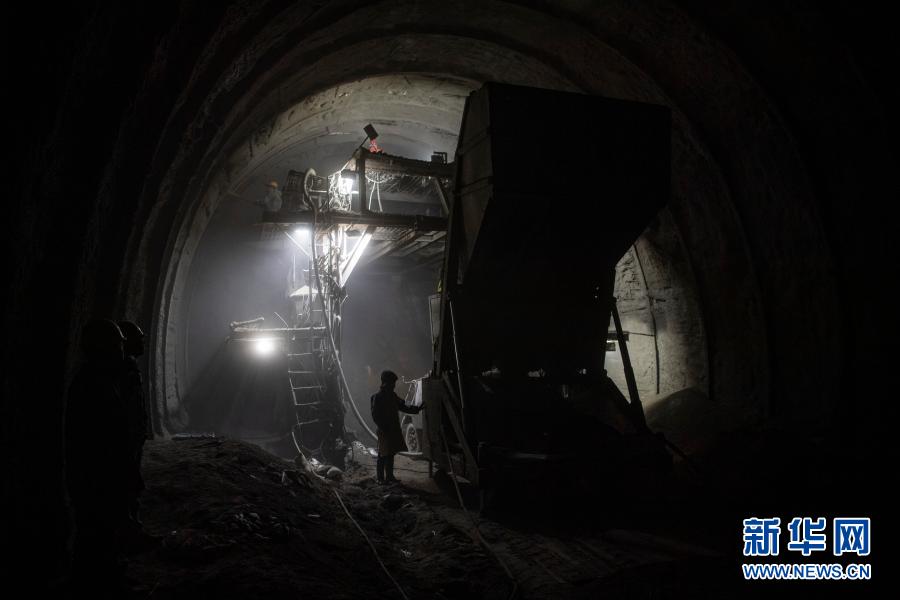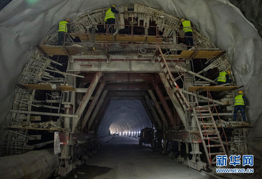 2月10日,在派墨公路老虎嘴隧道出口端,工作人員在進(jìn)行二次襯砌施工。新華社記者 孫非 攝