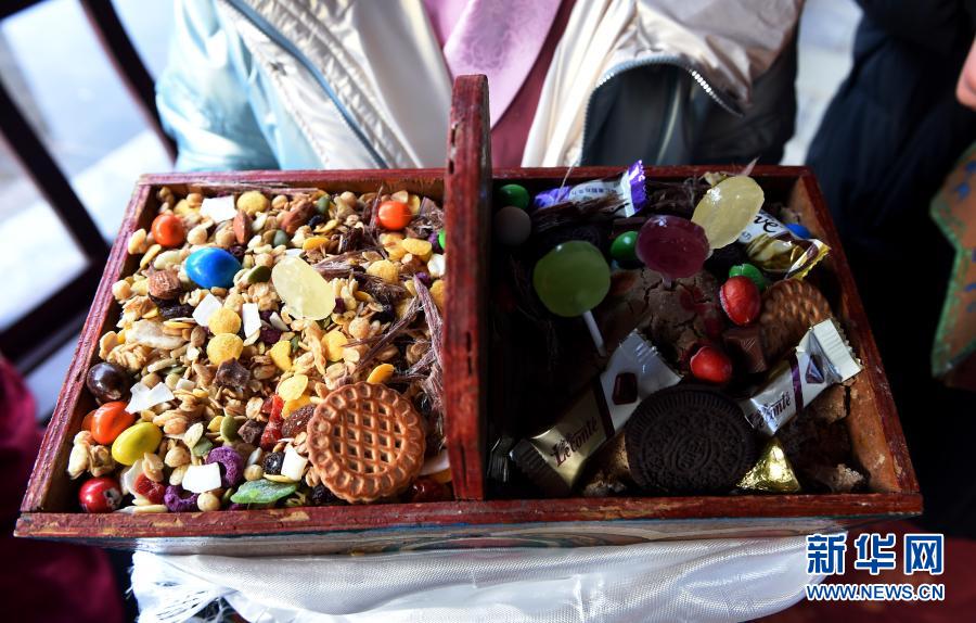 2月12日,合肥市第三十五中學西藏班的學生展示祈福用的切瑪盒,這是歡度藏歷新年必備的吉祥物。新華社記者 周牧 攝