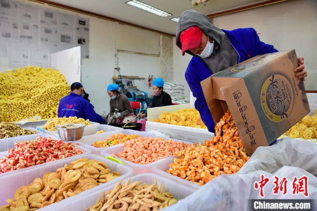 和面,再將和好的面用機器壓成面片,切割、著色后捏成條形、圓形、蝴蝶形等不同花式,最后放到酥油鍋里炸至金黃,待到出鍋時,瀝油再撒上白糖,香甜可口、樣式精美的卡塞就制作完成了。