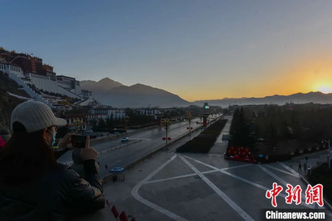 春節(jié)、藏歷新年初一,游客在布達拉宮觀景臺等待日出。江飛波 攝