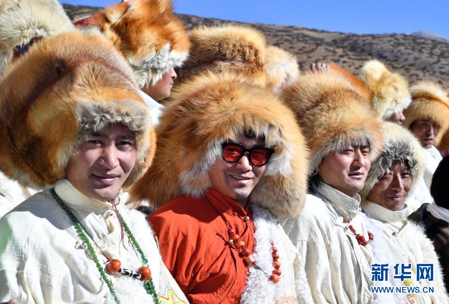 2月12日在藏北當雄縣公塘鄉(xiāng)拍攝的盛裝漢子。新華社記者 覺果 攝