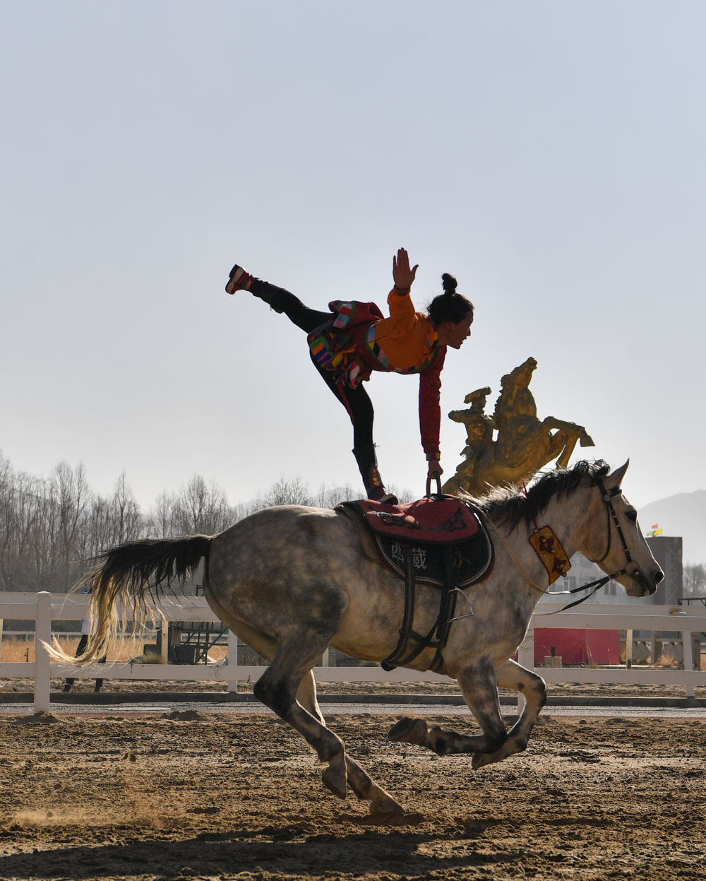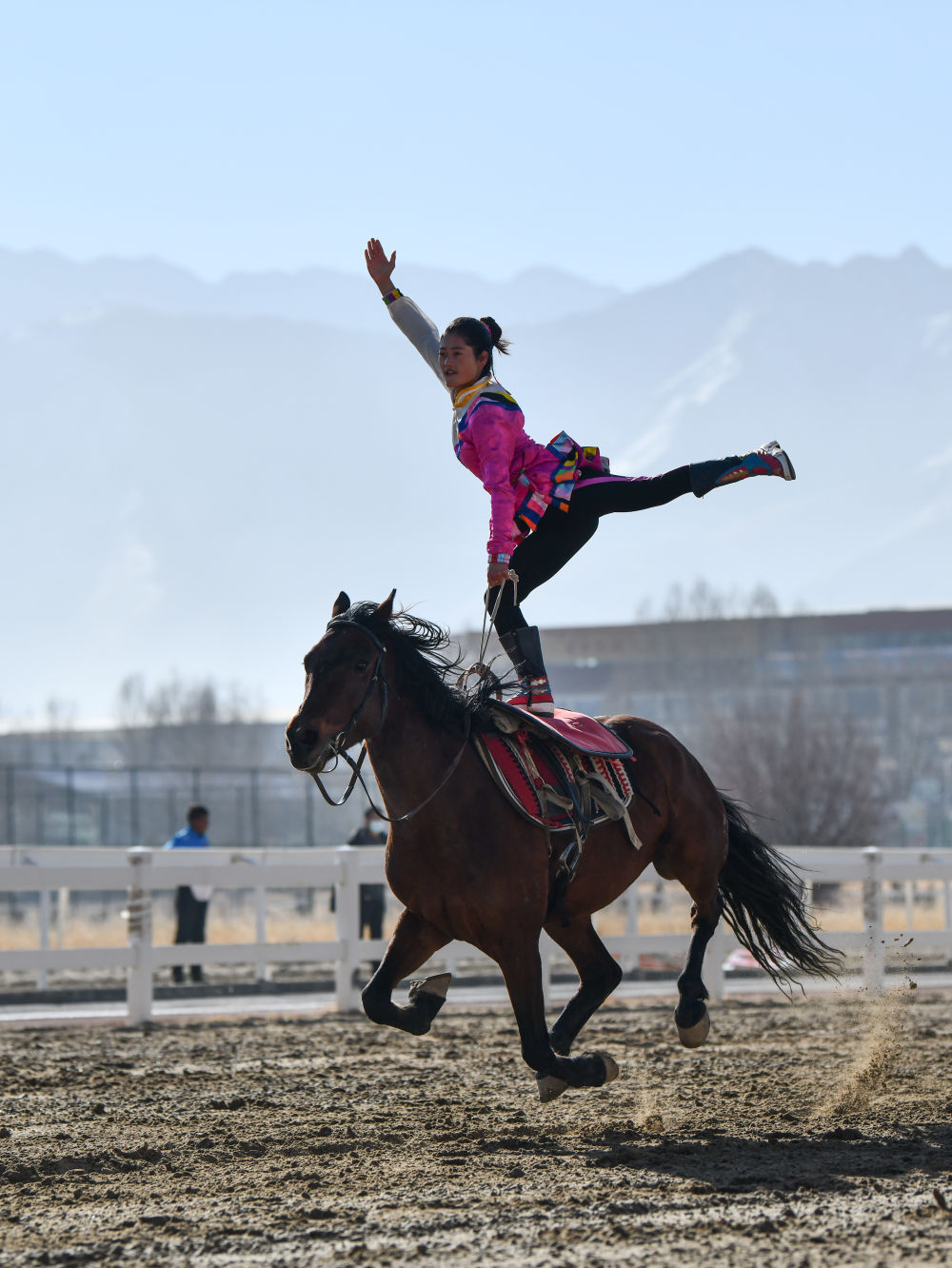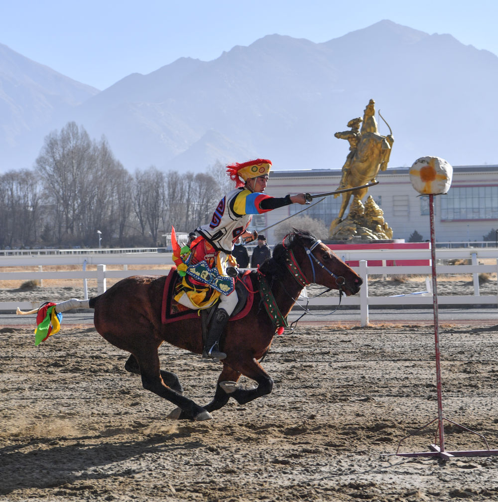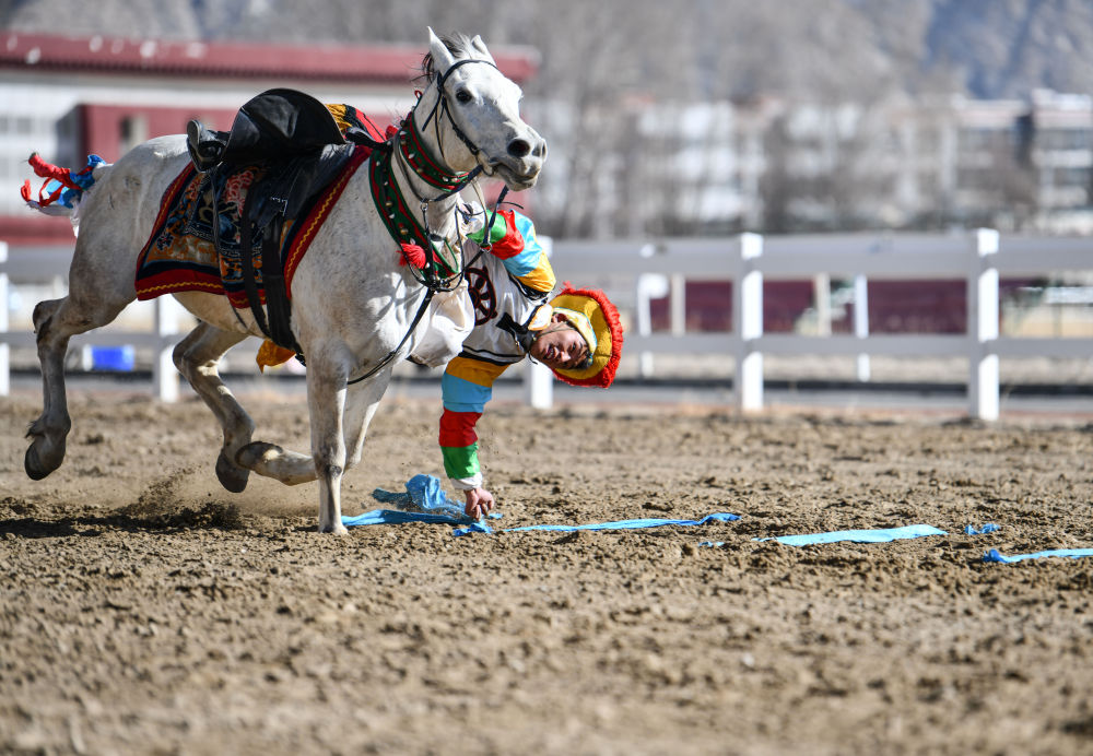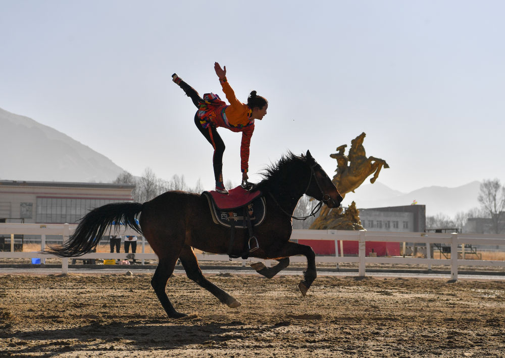 2月14日,為慶祝藏歷新年,西藏自治區(qū)體育局組織自治區(qū)馬術隊在拉薩北郊賽馬場舉行馬術表演。因疫情防控需要,這次表演被搬到“線上”,通過網(wǎng)絡直播發(fā)布。