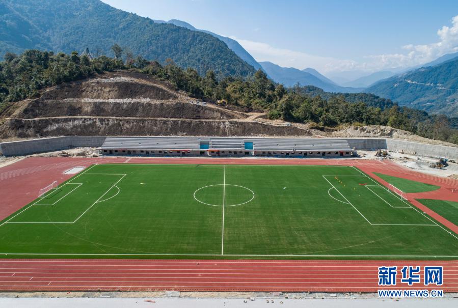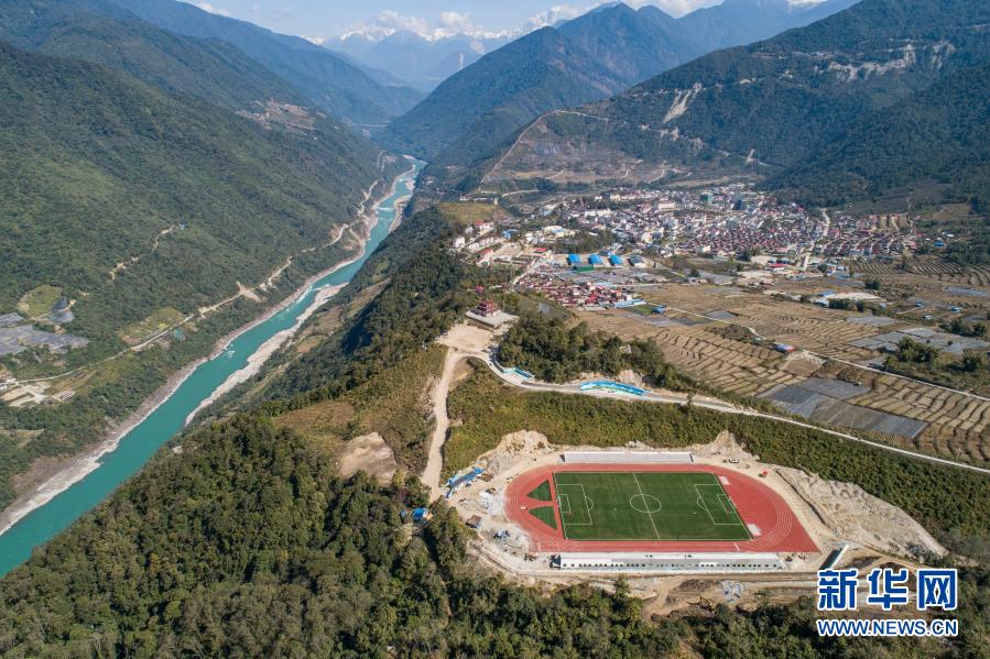 這是墨脫縣新修建的11人制足球場(chǎng)(2月13日攝,無人機(jī)照片)。新華社記者 羅博 攝