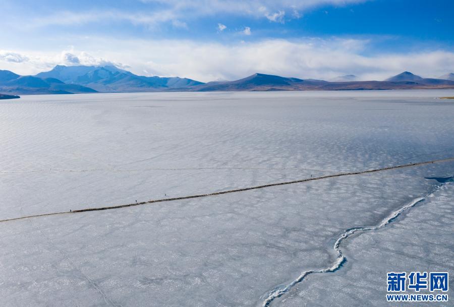 每年高原最冷的時刻,普莫雍錯封凍成冰湖。