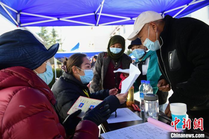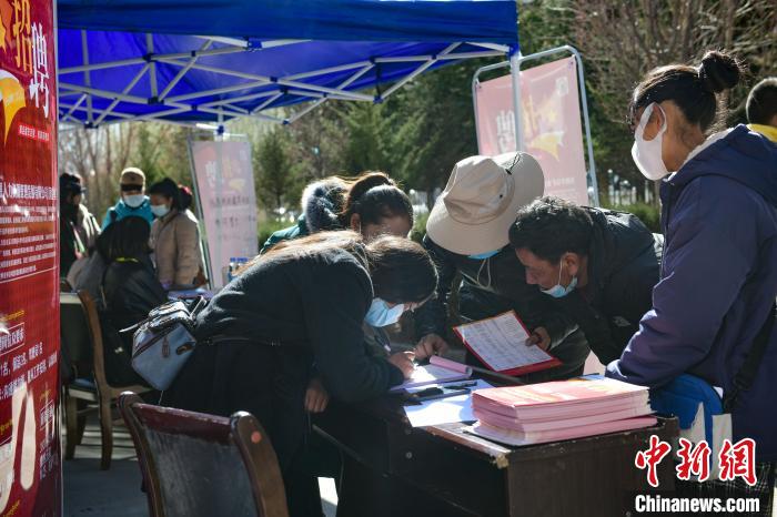 圖為用人企業(yè)代表(左)登記求職者個(gè)人信息。貢嘎來松 攝
