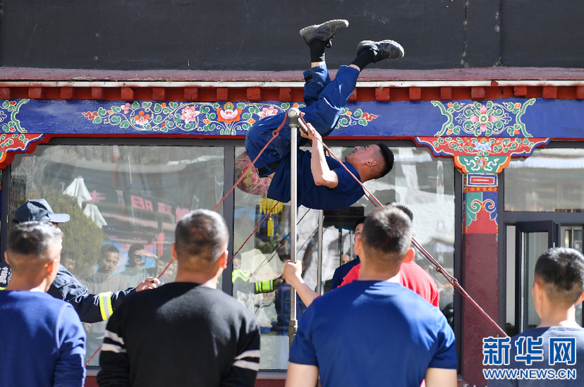 布達(dá)拉宮消防救援大隊(duì)隊(duì)員進(jìn)行例行體能測試(3月4日攝)。新華社記者 孫瑞博 攝