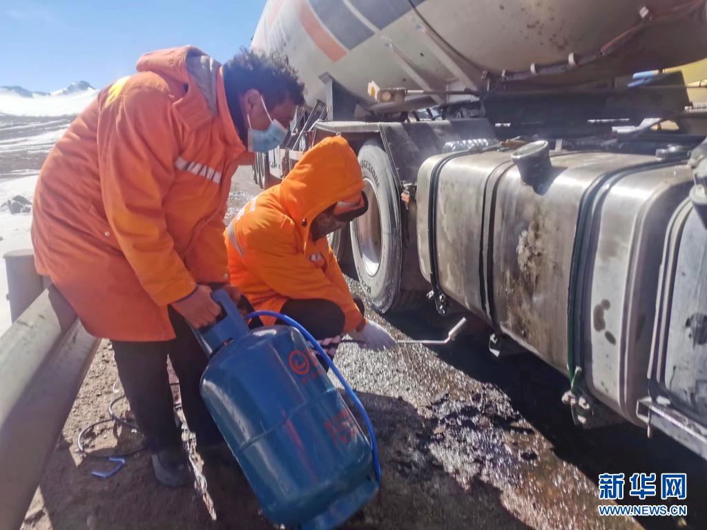 安多公路養(yǎng)護(hù)段工作人員幫助搶修故障車(chē)(2019年2月8日攝)。新華社發(fā)(后耀軍 攝)