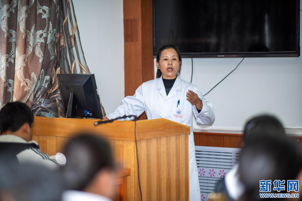 西藏藏醫(yī)藥大學色珍老師在給19級本科生教授方劑學課程(3月23日攝)。新華社記者 旦增尼瑪曲珠 攝