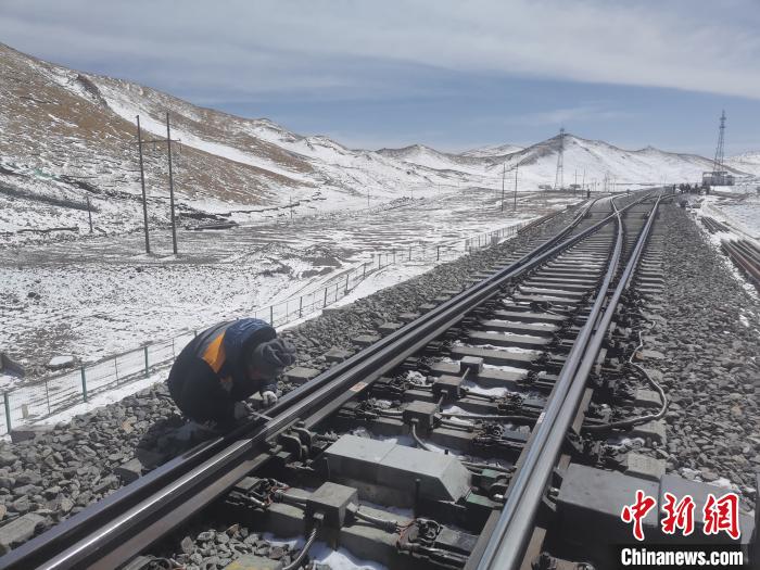 圖為工區(qū)職工正在檢修鐵軌。陶一中 攝