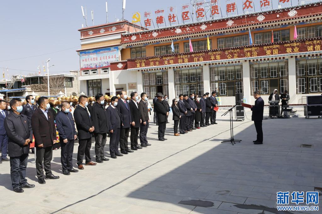 貢嘎縣委黨史學習教育“我為群眾辦實事”實踐活動啟動儀式現(xiàn)場 (3月29日攝)新華社發(fā)