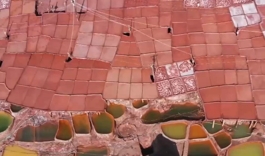 這段時(shí)間,瀾滄江邊的桃花開(kāi)得正旺,春意濃濃。離桃花谷不遠(yuǎn)處,就是芒康鹽井古鹽田。每年三四月桃花盛開(kāi)的季節(jié),鹵水經(jīng)過(guò)陽(yáng)光與春風(fēng)的滋養(yǎng),凝結(jié)出一顆顆宛若桃花般的結(jié)晶鹽,當(dāng)?shù)厮追Q(chēng)桃花鹽。這個(gè)季節(jié)正是鹽產(chǎn)量最高、質(zhì)量最佳、銷(xiāo)量最好的季節(jié)。眼下,村民們正忙著采集桃花鹽。數(shù)千塊曬鹽田隨著河谷山勢(shì),呈方格棋盤(pán)般整齊排列,層層疊疊,在藍(lán)天白云的映襯下,呈現(xiàn)出五彩斑斕的炫目色塊。