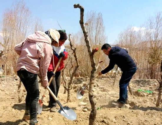 4月1日,西藏阿里地區(qū)普蘭縣的雙擁公園要比往常更熱鬧。當(dāng)?shù)馗刹咳罕娒χ灾矎年兾鬟\來的紅葉李、桃樹、國槐、柳樹和薔薇。