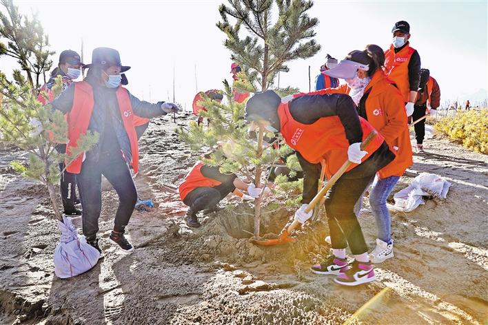 今年是全民義務(wù)植樹開展40周年。全區(qū)各族人民態(tài)度積極、熱情高漲,興致勃勃地投入到植樹活動中。