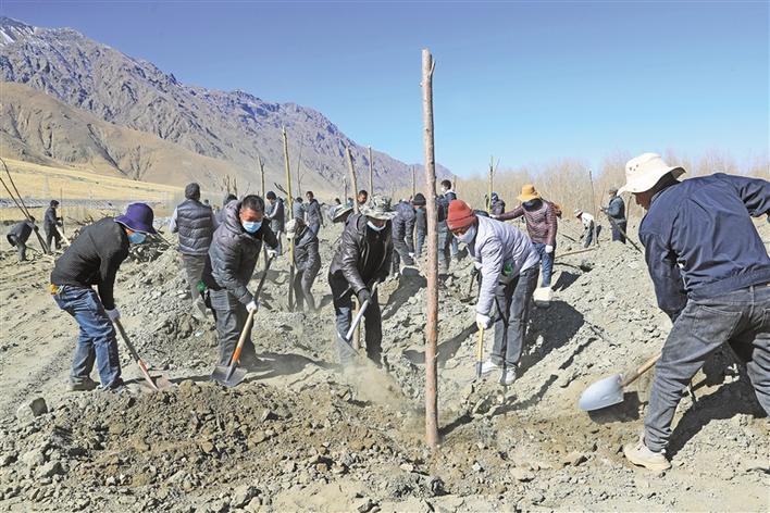 圖為山南市瓊結(jié)縣干部群眾開展植樹造林活動。