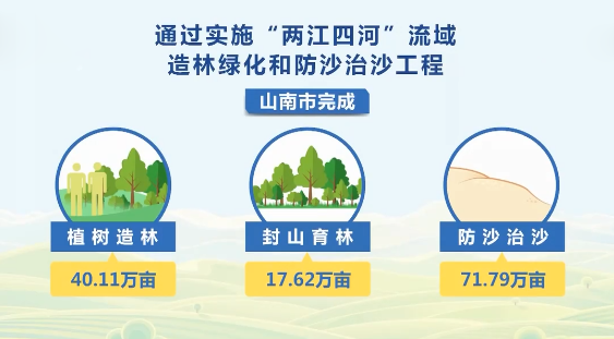 通過(guò)實(shí)施“兩江四河”流域造林綠化和防沙治沙工程,近年來(lái)山南市完成植樹(shù)造林40.11萬(wàn)畝、封山育林17.62萬(wàn)畝、防沙治沙71.79萬(wàn)畝,創(chuàng)建了全國(guó)防沙治沙綜合示范區(qū)。在“十四五”期間,西藏將進(jìn)一步推進(jìn)生態(tài)文明建設(shè)。