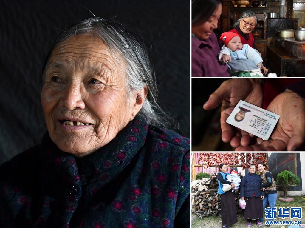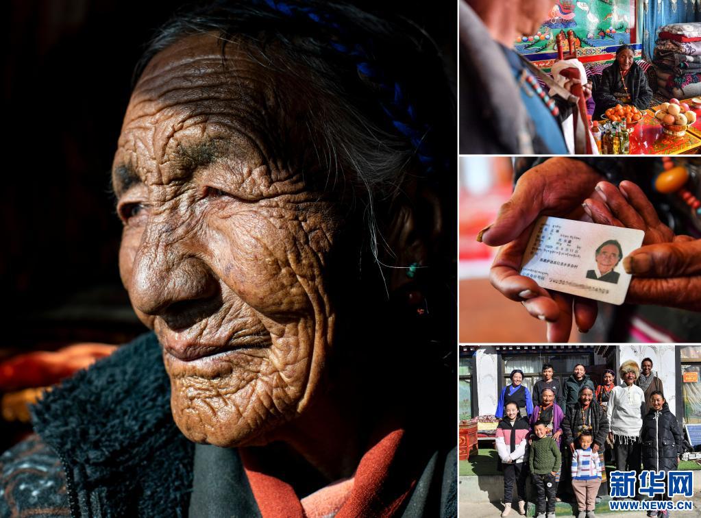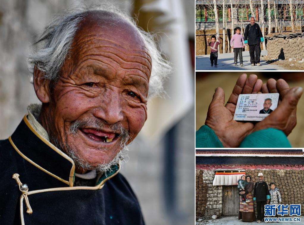 這是一張拼版照片,左圖為達(dá)確的肖像(1月14日新華社記者普布扎西攝);右上圖為家人給達(dá)確老人唱歌敬酒(1月14日新華社記者普布扎西攝);右中圖為達(dá)確的身份證(1月14日新華社記者晉美多吉攝);右下圖為達(dá)確(中)一家人的合影(1月14日新華社記者晉美多吉攝)。新華社發(fā)