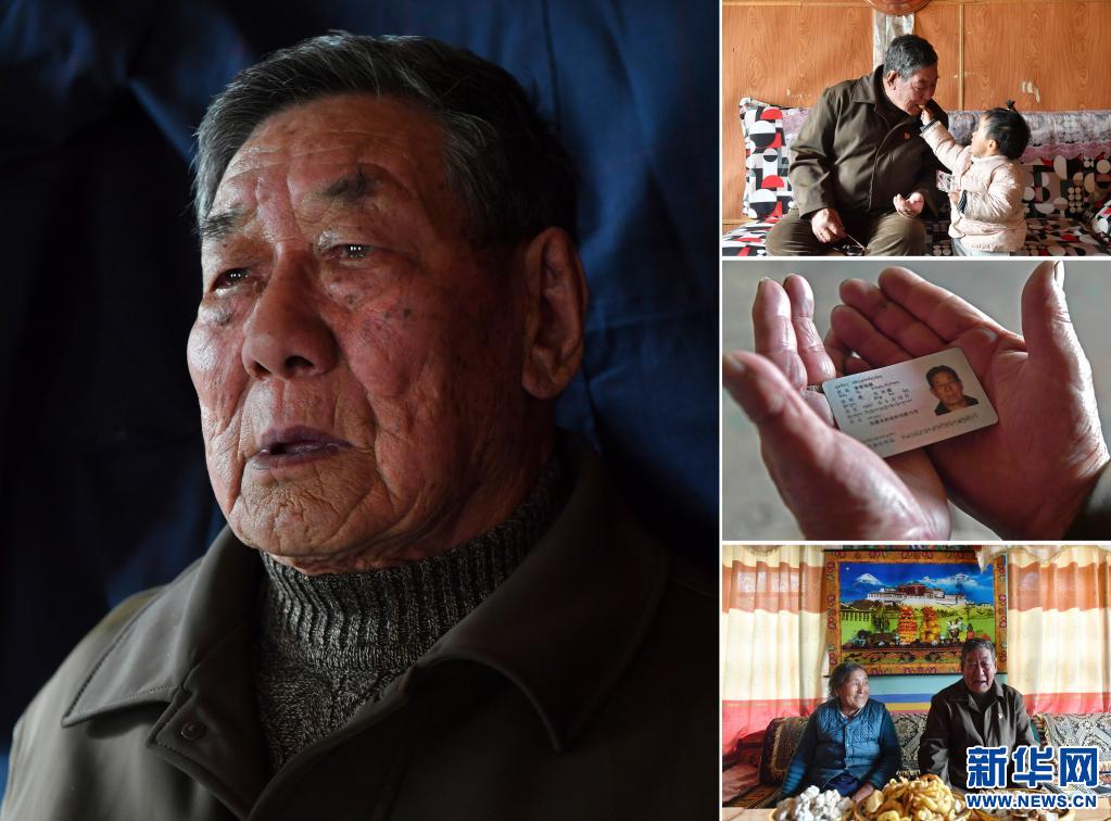 這是一張拼版照片,左圖為多扎木的肖像(3月20日新華社記者張汝鋒攝);右上圖為多扎木和兒子準(zhǔn)備坐車外出(3月20日新華社記者孫瑞博攝);右中圖為多扎木老人的身份證(3月20日新華社記者孫瑞博攝);右下圖為多扎木(中)和兒子、兒媳在家中(3月20日新華社記者張汝鋒攝)。新華社發(fā)