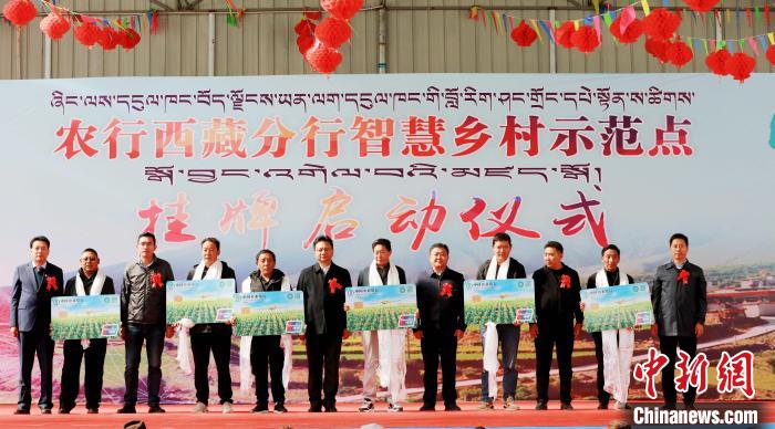 儀式上,農(nóng)行西藏分行黨委委員、副行長,兼拉薩分行黨委書記、行長羅布與拉薩市堆龍德慶區(qū)副區(qū)長次旦朗杰共同為首個智慧鄉(xiāng)村示范點揭牌。