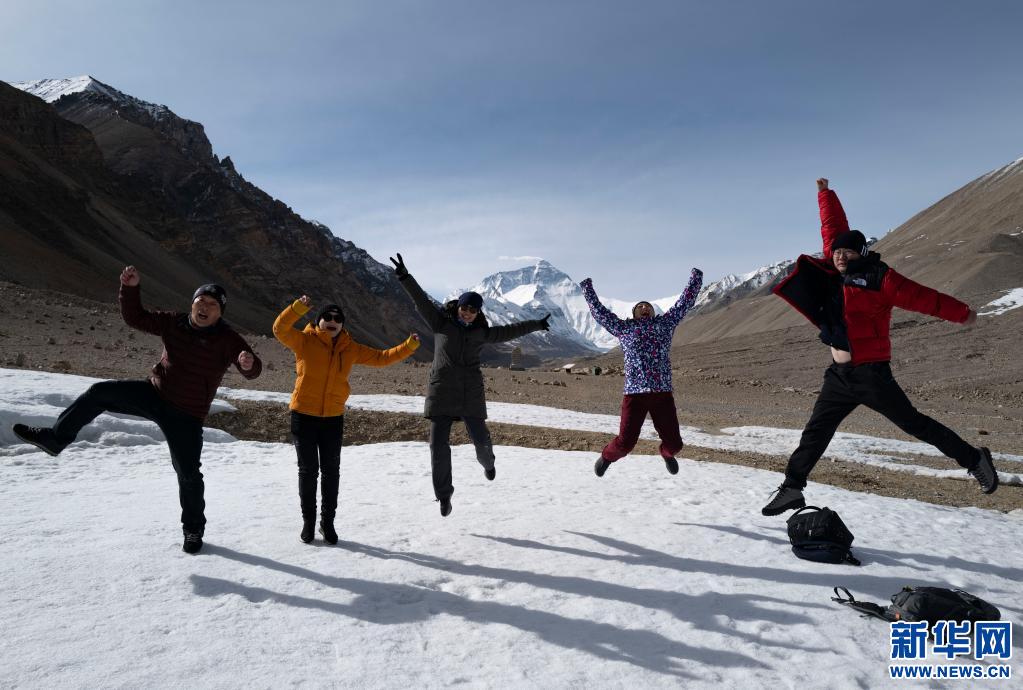 游客在珠峰景區(qū)內(nèi)留影(2020年5月5日攝)。新華社記者 普布扎西 攝