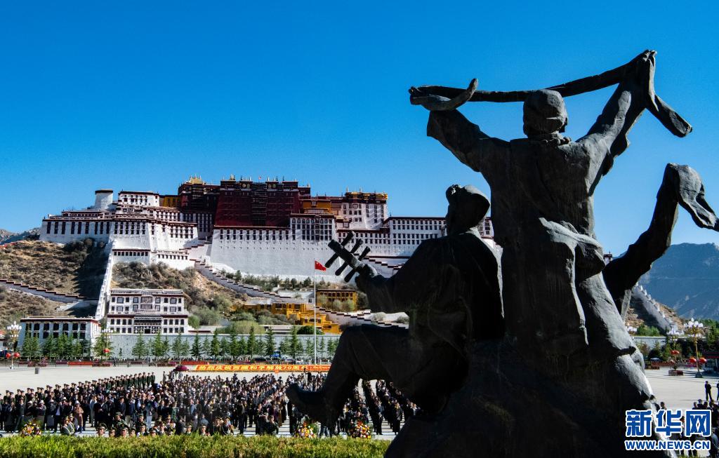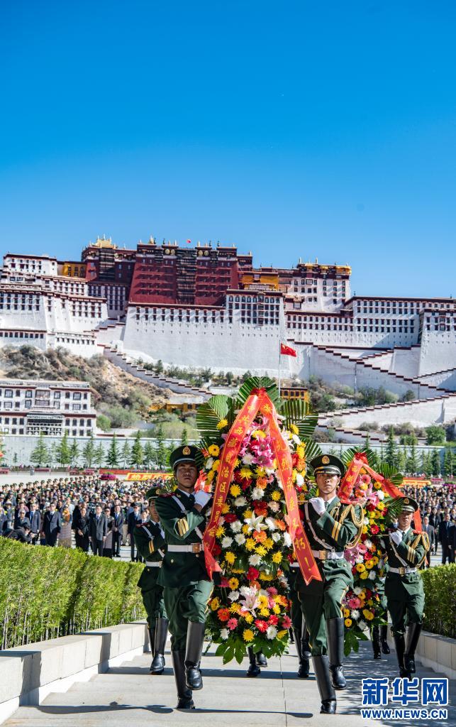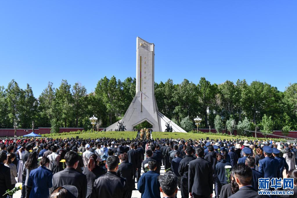 5月23日,西藏各族各界群眾一千余人在西藏和平解放紀念碑前,向革命先烈敬獻花籃、鮮花,深切緬懷為西藏和平解放事業(yè)英勇犧牲的革命先烈。