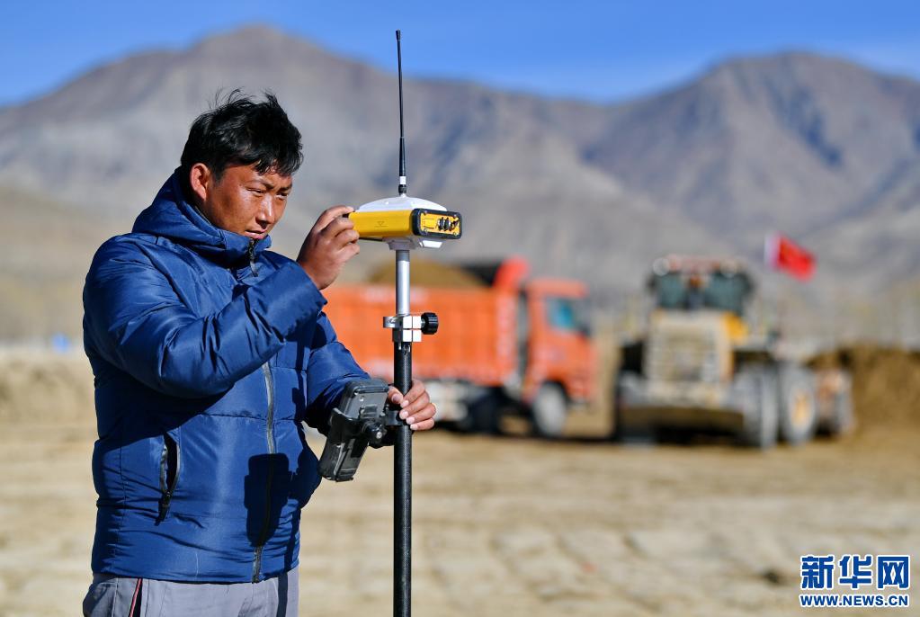 日喀則市桑珠孜區(qū)那塘村,測繪人員在高標(biāo)準(zhǔn)農(nóng)田項目施工現(xiàn)場進行測量(2020年3月1日) 新華社記者張汝鋒 攝