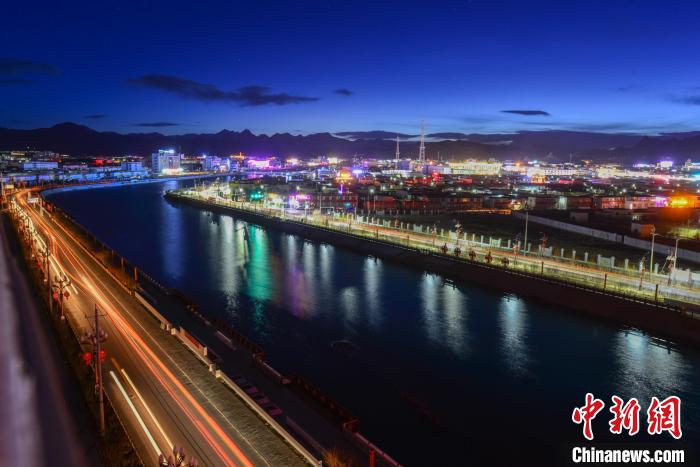 圖為西藏阿里地區(qū)獅泉河鎮(zhèn)入夜,華燈初上。2020年12月,隨著大電網(wǎng)電的接入,阿里地區(qū)從此告別缺電?!〗w波 攝